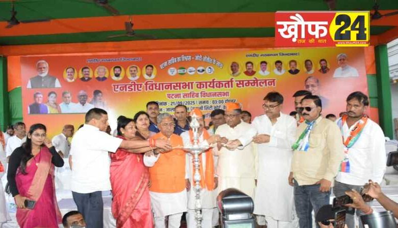 पटना सिटी, (खौफ 24) पटना साहिब विधान सभा क्षेत्र के एनडीए कार्यकर्ताओं के सम्मेलन में आज ” फिर एक बार एनडीए सरकार” का जयघोष करते हुए अपने लोकप्रिय नेता नंदकिशोर यादव को रिकार्ड मतों से जीत सुनिश्चित करने का संकल्प लिया गया। सम्मेलन का आयोजन पुरानी सिटी कोर्ट के निकट जालान भवन भवन में किया गया था। सम्मेलन में भाजपा के साथ साथ एनडीए में शामिल तमाम घटक दलों के प्रमुख नेता और भारी संख्या में कार्यकर्ता उपस्थित थे। सभी कार्यकर्ताओं ने भारी बहुमत से बिहार विधानसभा अध्यक्ष सह स्थानीय विधायक श्री नंदकिशोर यादव को भारी मतों से जीत सुनिश्चित करने का संकल्प लिया।