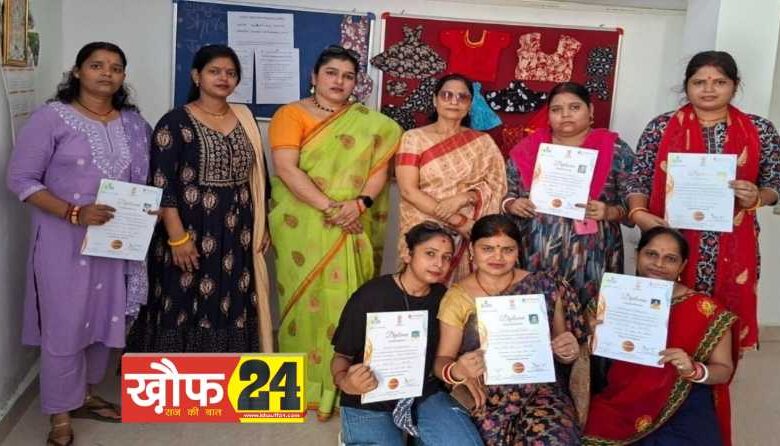 प्रशिक्षु महिलाओं एवं लड़कियों को परीक्षा में उत्तीर्ण होने पर सर्टिफिकेट दिया गया